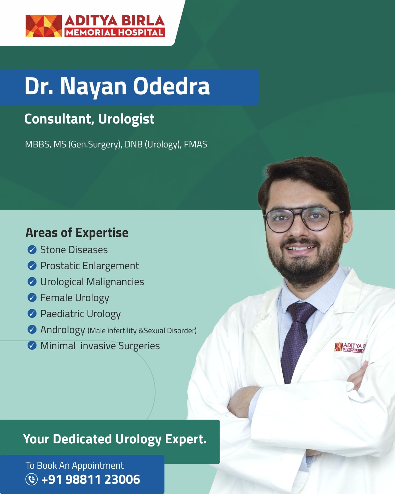 Dr Nayan Odedra is recognised as one of the leading and best Urologist in PCMC., we are committed to providing expert care in the diagnosis and treatment of urinary tract and male reproductive system disorders. Led by Dr. Nayan Odedra, a highly experienced and compassionate Urologist, our clinic offers advanced medical and surgical solutions tailored to each patient's unique needs. With years of clinical expertise, Dr.Nayan Odedra specializes in treating conditions such as kidney stones, prostate enlargement, urinary infections, male infertility, erectile dysfunction, and urological cancers. Utilizing state-of-the-art diagnostic tools and minimally invasive techniques, we aim to ensure precise diagnosis, effective treatment, and faster recovery. We believe in a patient-first approach, where confidentiality, comfort, and clarity are at the heart of everything we do. Whether it's routine urological care or complex surgery, you can trust us for ethical, evidence-based, and personalized treatment. Let us help you lead a healthier, more confident life — because your urological health matters.